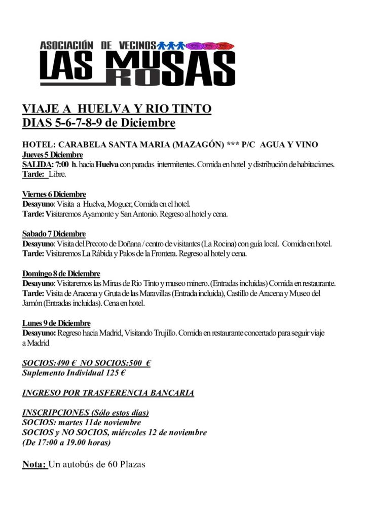 VIAJE A HUELVA Y RIO TINTO DEL 5 AL 9 DE DICIEMBRE DE 2025
