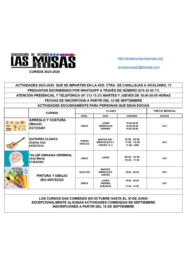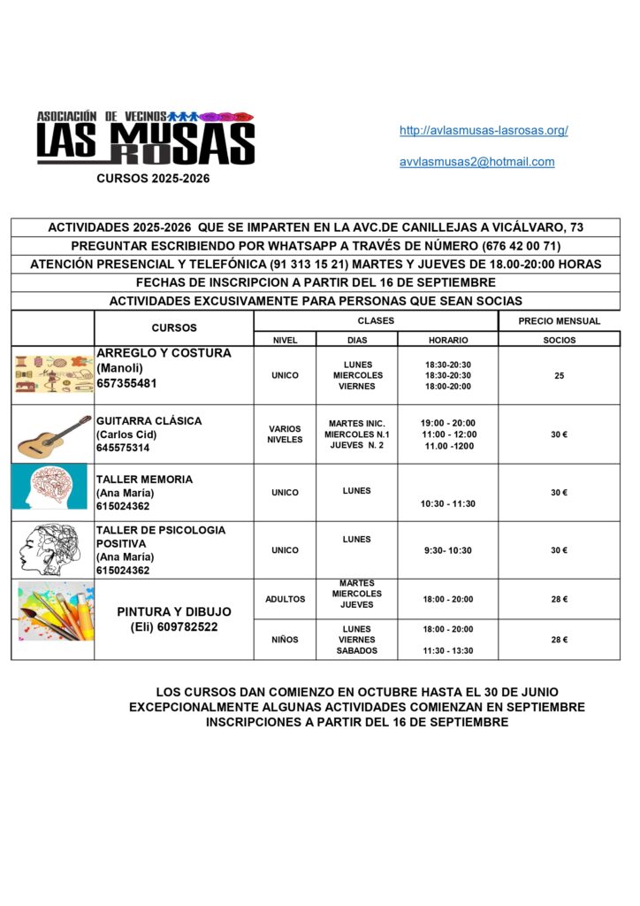 Bienvenido a la pagina web de la asociación de Vecinos Las Musas Las Rosas del barrio de las Rosas
